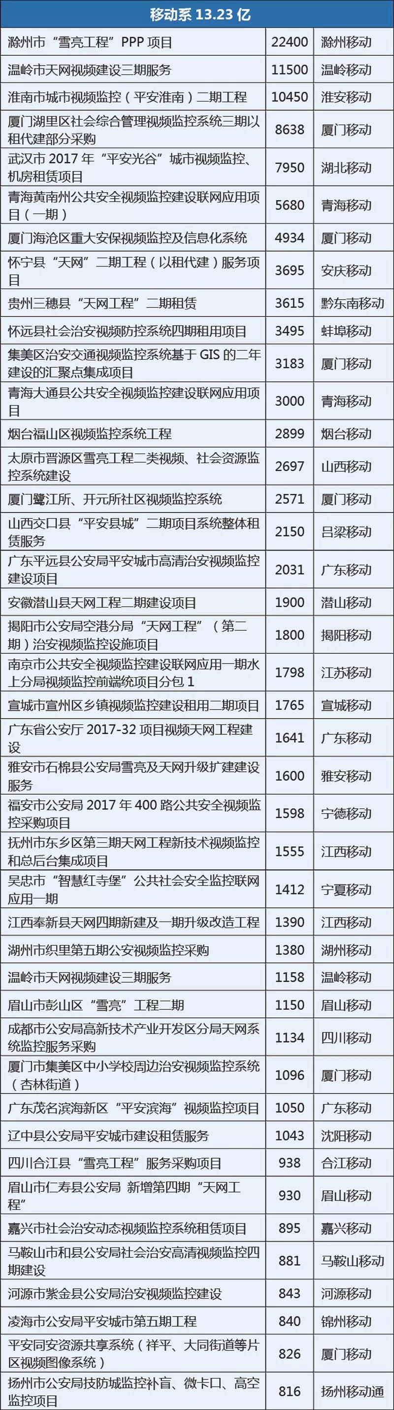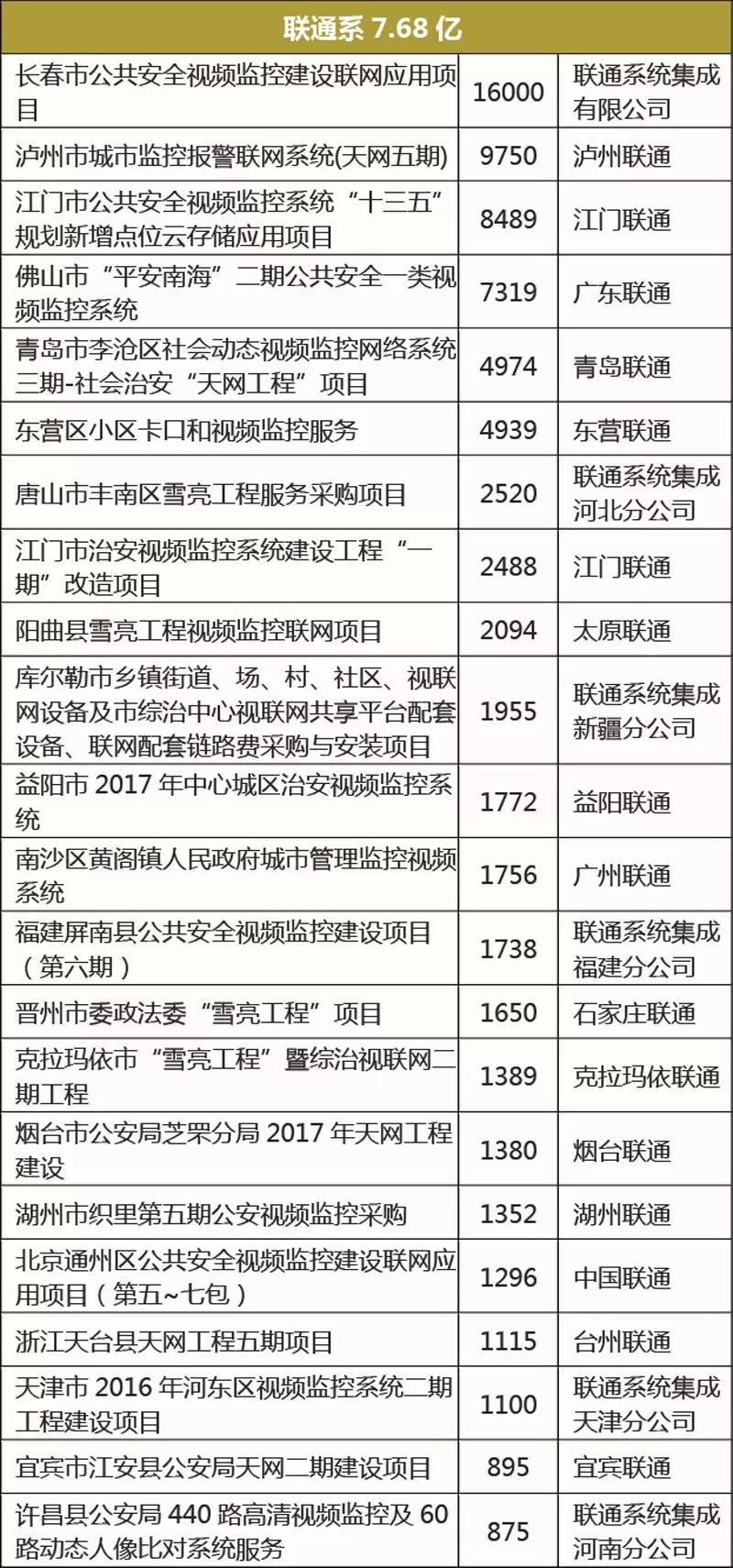 (注:本次數(shù)據(jù)統(tǒng)計口徑為大于800萬的安防市場項目,為了計算方便,聯(lián)合體中標的項目金額平分,如有謬誤,敬請諒解。)